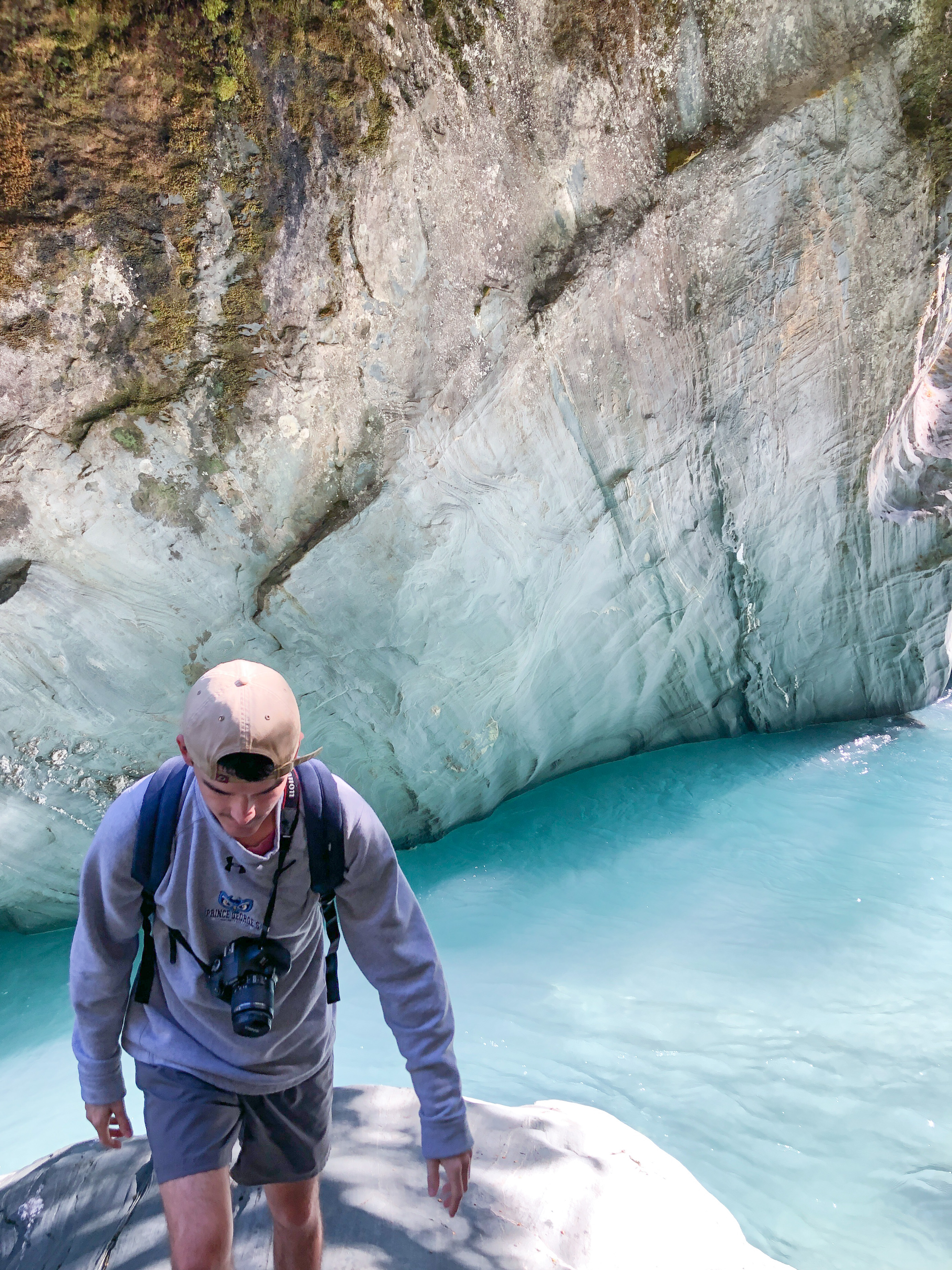 From left to right: First View in NZ, A Walk to the Water, Coastline, Sunset from the Beach Cave, Not a Bad Spot to Breakdown, Blue-ass Water, The New Zealand Caps